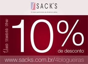 Meninas, hoje (domingo) é o último dia para aproveitar o desconto de 10% da Sacks.