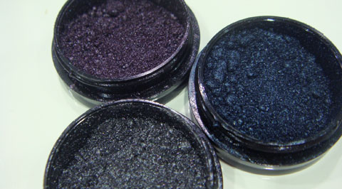 Voltando à Koloss, olhem que luxo esses potinhos de sombra em pó solto! A Franciele me disse que os tons e o acabamento – mega brilhante – foram inspirados no jeans.