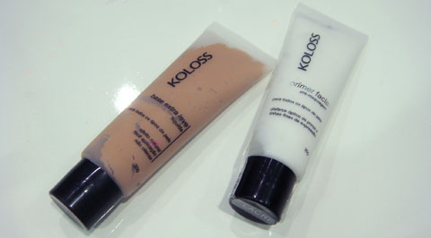 Os dois produtos da foto acima não são necessariamente novidades, mas eu não conhecia e adorei. Vocês sabiam que a marca tem primer para o rosto? Testei no dorso da mão e senti a pele muito aveludada, acho que promete. Para usar junto, a empresa disponibiliza uma base extra leve, para dar cobertura e acabamento naturais. E não para por aí: fiquei surpresa em saber que a Koloss fabrica itens como pó transparente fixador, para finalizar o make, e batons mate!