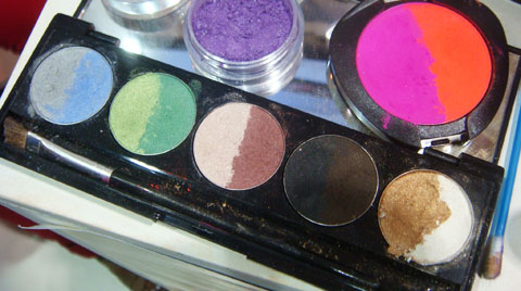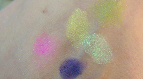 Dá para fazer bastante coisa com essas sombras neon – usar com um esfumado mais escuro, delinear com pincel chanfrado úmido…