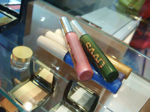 Não, eu não estive numa feira de artesanato também! Essa vitrine cheia de tubinhos que parecem de tinta é da Saad. Além de fazer roupas e acessórios, a marca possui uma linha completa de maquiagens desde 2007 e, a partir de março do ano que vem, terá uma coleção que te permite criar cores e acabamentos únicos para batons, blushes e sombras!