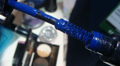 Olhem que legal: a empresa também trouxe como novidade o rímel azul, com primer em uma das pontas, que promete tratar e alongar os cílios. Dá para encontrar em preto também.