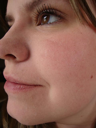 Aqui embaixo, a cor dele com flash e com luz natural. A segunda foto, a da luz natural, está beeem fiel – ele é isso mesmo, um blush rosa pálido. E a textura dele lembra um pouco as sombras Satin da MAC, que têm um brilho, mas não é glitter e não é exatamente perolado também. São partículas beeem fininhas de brilho, o que dá um acabamento discreto e uma aparência de glow natural.