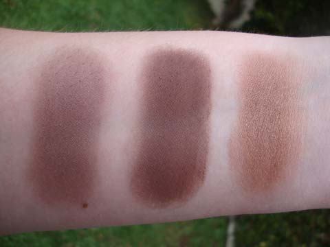 E aí os swatches: The Body Shop, EDM e Lancôme. A da The Body Shop tem um tom que puxa para o ameixa e é bem sutil; a da EDM é MUITO forte e pigmentada, chega a ser dificil de passar; e a da Lancôme tem um marrom mais claro e cintilante. Todas são boas e bem diferentes! Quem me sugere uma sombra marrom boa, bonita e barata?