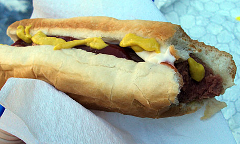 Já o cachorro-quente é aquela coisa bem sem graça: pão com VINA (salsicha em curitibanês). Daí você pode colocar molhinhos a parte mas que não vão muito além de catchup, mostarda e maionese.