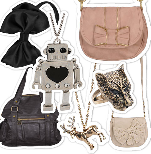 Outra coisa legal é que a loja também vende acessórios que são geniais. Anéis de laço e com animais custam em torno de 5 dólares. Colares com pingentes fofos também não custam muito mais do que isso. Ainda tem bolsas que são uma graça e arquinhos bem exagerados (e lindos).