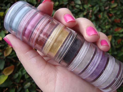 E o legal, e que eu descobri enquanto tirava as fotos para esse post, é que dá para fazer essa TORRE de sombras, elas encaixam umas nas outras! E encaixam inclusive nas sombras da Avon (a rosa e a azul, ali emcima, são da Avon!). Adorei!