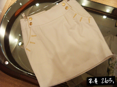 E, pra terminar, essa sainha fofa meio marinheira! O branco + dourado + botões ganhou nosso coração!