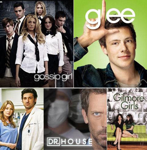Das atuais: Grey’s Anatomy; Big Bang Theory; Glee e Vampire Diaries.