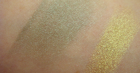 Os pigmentos: Antique Green (Burmese Beauty) e Old Gold (Leopard Luxe).