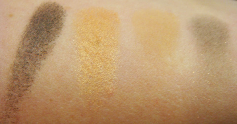 O quarteto de sombras (Burmese Beauty) traz cores meio inspiradas na natureza ao que parece. Aí vão os nomes, começando em sentido horário pelo círculo na parte de cima e à esquerda: Prized, Burmese Beauty, Showstopper e Skintone 2.