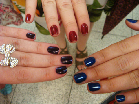 Lá no dia, tinha uma manicure à disposição para pintar as unhas das meninas com os esmaltes Nail Trend F/W 2010, lançamento em edição limitada da marca! Sabrina (de anel de laço) foi de Rain of Flowers, já Manu (no meio) escolheu o Concubine, e Julia, por sua vez, apostou no Ming Blue.