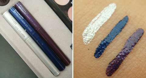 Os delineadores em caneta foram a sensação da noite. Além de super pigmentados, fixam na pele que é uma maravilha! Cores, de cima para baixo: Nocturnal, Signature Blue e Smoky Heir.