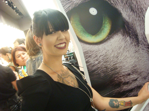 Olha só a vendedora da loja (não perguntei o nome dela, droga!) usando o Kittenish, batom vinho escuro mais bafão de todos! Esse é da Burmese Beauty.