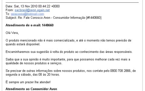 Total apoio uma enxurrada de emails para o setor de atendimento ao cliente da Avon!