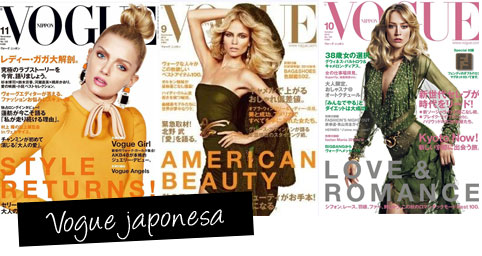 A Vogue UK Já tem um estilo meio diferente de capa, geralmente com uma mulher do momento, seja ela modelo, atriz, cantora… sem uma padrão definido de visual. A japonesa vem com fundo branco e modelos com foco no corpo (e nas roupas, é claro). Já a francesa é a mais diferentona e fashionista de todas, padrões não são com eles e o objetivo é se diferenciar mesmo. Curto a ousadia!
