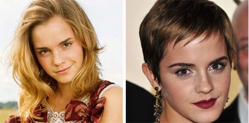 Achei que a Emma continua linda de cabelo curtinho,acho o rosto dela delicado o bastante pra sustentar um corte assim!Ela tem rosto pra isso mesmo!Se eu tivesse chance e um rosto assim,metia a tesoura também!
