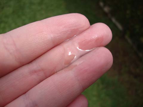 Como dá para ver aqui embaixo, a textura dele é em gel e ele é transparente e super fininho, quase líquido.