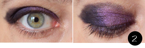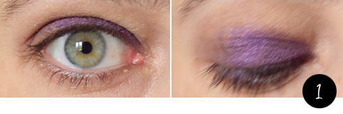 1. Primeiro passei a sombra lilás no canto externo do olho até a metade da pálpebra.