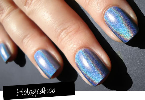 Quem acompanha os blogs de esmaltes sabe que esse acabamento não é novidade, mas boatos dão conta que por enquanto nenhuma marca nacional lançou o “autêntico” holográfico. O legal desse visual é que ele parece ser bem normal, mas quando bate a luz do sol, dá aquele brilho multicolorido.