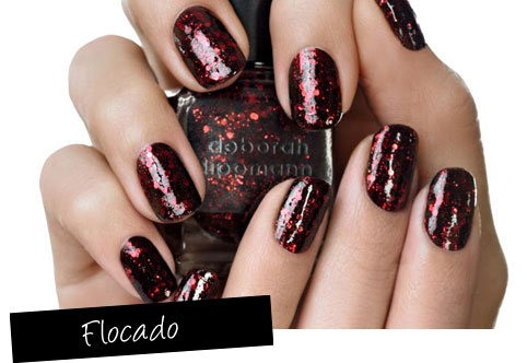 Os esmaltes da Deborah não são considerados flocados, na verdade eles tem glitters bem grandes hexagonais e não flakies ( lá fora chamam de chunky glitter ) Alguns flocados seriam os da Nfu-Oh, 2010 da Nubar ou o Hidden Treasure da Sally Hansen 😉