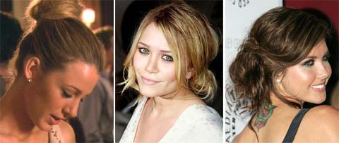 2. Coques. É só juntar os cabelos e fazer um embolado! Pode ser mais para cima ou mais para baixo ou até para o lado e todo desfiado, tipo o da Audrina! Se for muuito certinho, fica chato!
