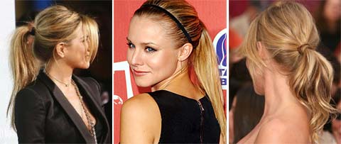 1. Rabos de cavalo. Quer mais simples que isso? Ainda dá para puxar uns fios, depois do cabelo preso, e fazer igual ao da Jennifer ou por um arquinho, como a Kristen. Meu preferido, da Cameron Diaz, é esse com a mechinha enrolada por cima do elástico. Dois minutos pra fazer!
