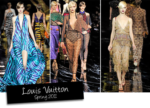 No desfile da coleção de primavera da marca Louis Vuitton a inspiração meio melindrosa das roupas com franjas e rendas foi direto para os cabelos e maquiagem, numa coisa assim bem anos 20. Olha só esse batom que coisa mais linda!