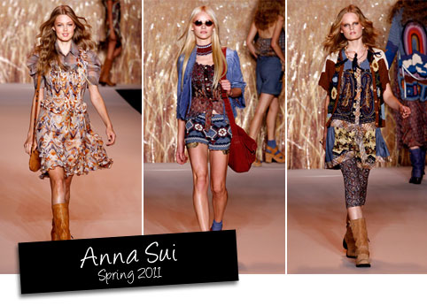 Já no desfile de primavera da Anna Sui o visual folk deu o tom e com isso os cabelos bem compridões apareceram na passarela. Não dava para esperar um visual diferente com roupas e cenário tão campestres!
