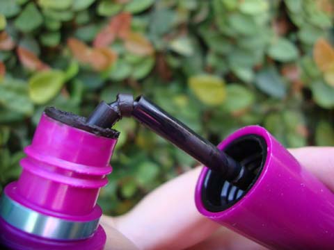 E o cabinho do pincel é flexivel! Dá para ver nas duas fotos, nessa aqui de cima e na debaixo, já meio tortinha. É ótimo porque o cabinho mais torto faz com que fique mais fácil passar o produto em todos os cílios (e muita gente entorta o cabinho de qualquer forma, a Maybelline só facilitou nossa vida)