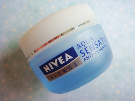 Achei que estava órfã do produto até ganhar da Nivea o Aqua Sensation, creminho que promete diminuir as olheiras e os inchaços. O potinho é pequeno (15 g), cabe no meio da palma da mão, mas tem conteúdo suficiente para muito tempo de uso, acreditem!
