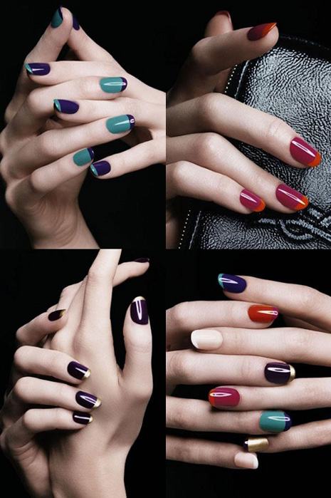 Lembram da campanha da YSL que sugeria o uso de cores bem vibrantes na tradicional francesinha? Pois chegou a hora de colocarem em prática a ideia! Pra isso, é só misturar pinks, turquesas, laranjas, roxos e dourados… Acho inusitado e lindo! A Impala tem esmalte cor de ouro pra vender na coleção Cromo, hein?