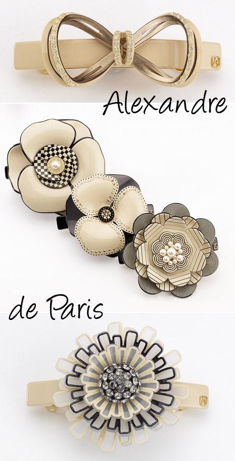 A Alexandre de Paris desembarcou por aqui recentemente, em loja no Shopping Cidade Jardim, em São Paulo. As fivelas, com carinha retrô, são apaixonantes! Estou encantada com a de camélias. Cada um dos itens é feito à mão por artesãos franceses e a matéria-prima principal é o acetato, com toques de cristais e pérolas.