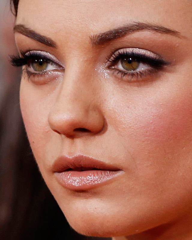 Mila Kunis apostou na sombra brilhante. Olha só como a sobrancelha suavemente preenchida dá uma força extra no visual.