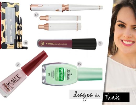 Mah, os números da sua lista e da montagem estão trocados… Eu tb achei mágico esse esfoliante que a Lia mostrou no vídeo dela! Não deixa de resenhar, hein! Thais, esse trio da Natura parece lindo mesmo, eu adorei a make que a Bruna fez com ele! Sá, que lista é essa, minha filha? Vc tá muito asiática e com marcas novas e desconhecidas por aqui. Achei ousada, achei inovadora, viu? Hahahaha! Beijos!