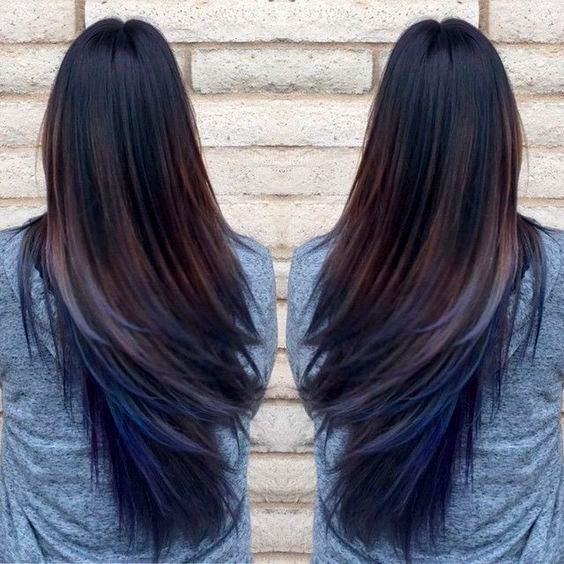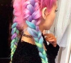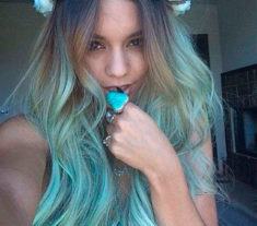 Pretendo ser uma grávida colorida, rsrs. Atualmente estou ruiva e não pretendo mudar, mas quando for engravidar (dizem que pode pintar depois do 1º trimestre e que há tintas seguras, mas prefiro não arriscar…)e parar de colorir inteiro, penso em fazer um ombré colorido! Adoro essa ideia dos tons de mancha de óleo (verde, azul e roxo).