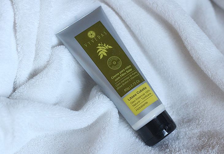A promessa deste hidratante para as mãos com FPS é de hidratar, proteger e nutrir com rápida absorção. Além disso, Vyvedas conta que ele protege dos raios UVA e UVB, evita manchas e combate os efeitos noviços do sol. A fórmula tem manteiga de karité, cupuaçu, girassol e litsea cubeba, uma planta típica da Ásia com propriedades antissépticas e purificantes.