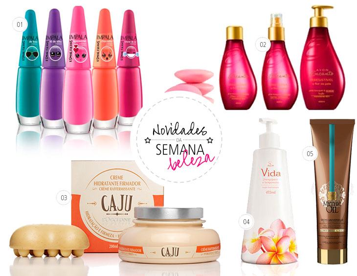 01. Impala coloca no mercado a coleção “Esmalticons”. Composta por cinco cores e cada tom representado por um “Esmalticon” exclusivo, a coleção tem como principal característica a diversão. Os esmaltes possuem pincel flat, fórmula dermatologicamente testada, longa durabilidade, alto brilho e cobertura perfeita. As cores são: Chorei de rir (magenta – cremoso), Tô de olho (violeta – cremoso), De boa (verde – cremoso), Apaixonei (rosa – cremoso – semi brilho) e Chocada! (laranja – cremoso – semi brilho). Preço sugerido: R$4,20.