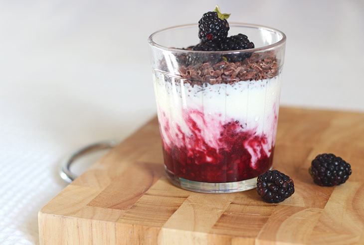 Coloque a chia dentro do líquido e deixe descansando na geladeira por 8 horas, depois é só complementar com o que quiser.