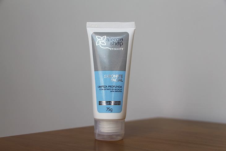 Existem algumas marcas bastante preocupadas com essa questão e uma que não conhecia, mas agora está com uma unidade em Curitiba, é a Alergo Shop. Eles me mandaram há algum tempo o sabonete facial Eternity, que é hipoalergênico e contém extrato de alcaçuz.