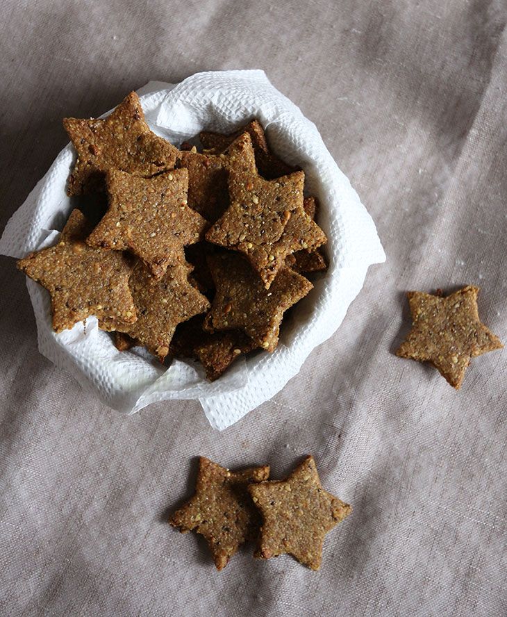 Misture os ingredientes e amasse com as mãos até formar uma massa densa. Adicione água até os ingredientes ficarem bem unidos, talvez precise um pouco mais do que o indicado na receita. Abra a massa, corte em quadradinhos ou com uma forma e asse em forno médio por 15 minutos. A receita rende mais ou menos uns 60 biscoitos, dependendo da espessura da massa que você fizer.