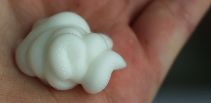Estamos falando aqui de um produto que vem em gel, mas simplesmente se transforma em espuma ao sair da embalagem – é o mesmo esquema das espumas de barbear dos homens, só que numa versão feminina, digamos! A válvula lembra aquelas de spray de cabelo e a lata contém 170 gramas.