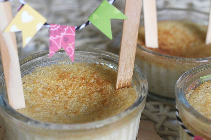 Para fazer uma graça, resolvi fazer a receita em potinhos e decorá-los com bandeirinhas de papel colorido. É só cortar o papel do tamanho certo, colar num barbante e amarrar num palito. É fácil de fazer, só precisa de uma certa paciência. Mas o resultado é fofo!