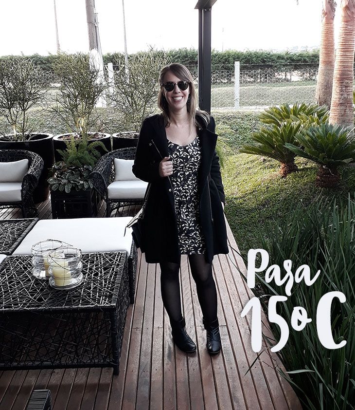 Essa dica meio que complementa a anterior. Dependendo da temperatura, dá sim para usar saia, vestido e shorts com meia calça. A espessura da meia vai depender de quão friorenta você é. Não tenho aqui uma tabela com a variação de fios versus temperatura, mas como você já imagina, meia de fio 15 é super fininha e não esquenta nada. Já a meia de fio 130 é mais grossa, e pode manter as pernas longe do vento em temperaturas um pouco mais baixas.