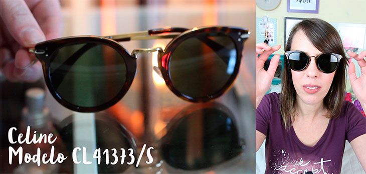 Também é um modelo que uso bastante, mas ele segue mais ou menos o modelo aviador. Também com detalhes dourados e armação marrom. Outra característica desse modelo é que ele é dobrável, então fica bem pequenininho para carregar na bolsa.