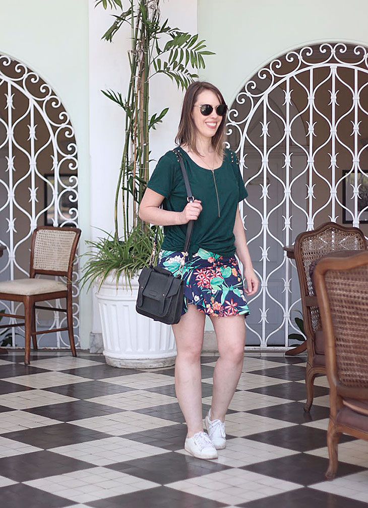 Foto tirada pela Melina Souza. A saia foi comprada a mais de 4 anos e a camiseta foi comprada no Enjoei, coincidentemente, a vendedora era leitora do blog. 🙂 O colar é da Forever 21, tênis Bottero e bolsa Adô.