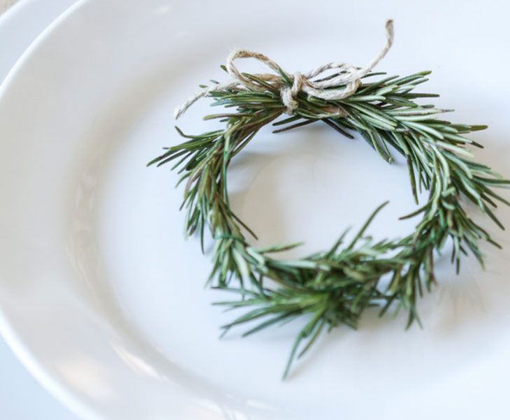 Começando pela ideia que abre o post, uma mini guirlanda de alecrim ou do arbusto que tem na esquina da sua casa já dá uma graça para a mesa de Natal e não precisa nem comprar nada. Também vale usar galhos para enfeitar a mesa ou até fazer uma graça para marcar o lugar do convidado na mesa.