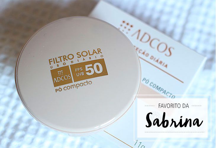 Meu pó preferido não é bem um pó, mas funciona da mesma forma, ele é o filtro Solar Adcos FPS 50 em pó. O protetor funciona igualzinho um pó compacto, dando efeito mate na pele, controlando um pouquinho a oleosidade, sem adicionar cor no rosto e ainda servindo como retoque para o protetor solar. O ideal seria aplicar com a esponjinha que vem junto na embalagem, assim a camada fica mais grossa, protegendo mais a pele. Mas dependendo da quantidade de produto, ele começa a acumular nas linhas de expressão ficando meio craquelado.