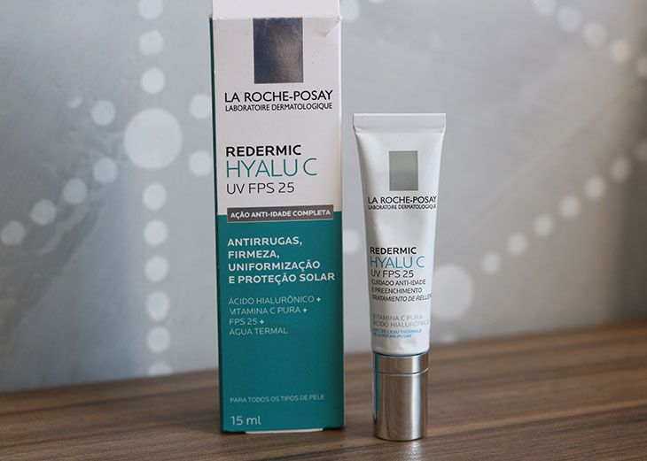 O Redermic Hyalu C UV, com FPS 25 tem Vitamina C a 5%,Madecassosside, manose (um açúcar de origem vegetal que ajuda a melhorar a textura e a uniformização da pele) e o ácido hialurônico fragmentado. Ele promete preencher rugas profundas, melhorar a firmeza da pele, uniformizar o tom e proteger de raios solares.