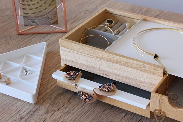 Thais resolveu dar uma organizada extra nas bijus com o Porta-joias Stowit e a bandeja para acessórios Trinity, ambas da MUMA. As duas são super clean, com visual moderninho e deixam as peças arrumadas de um jeito bonito e organizado.
